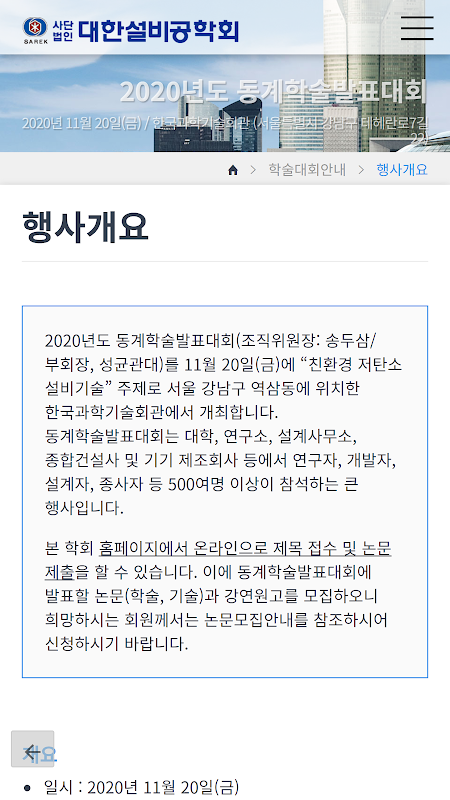 대한설비공학회 2020년도 동계학술발표대회 어플리케이션입니다.