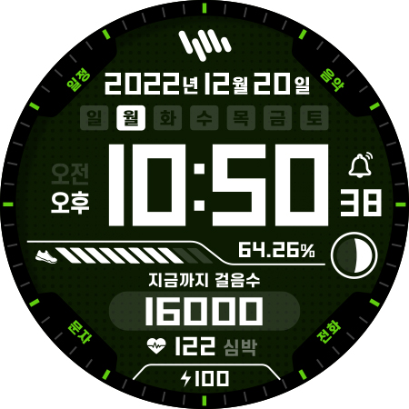 WatchFace ha una batteria, un contapassi e una misurazione della frequenza cardiaca.
