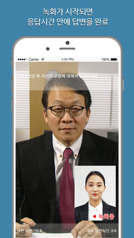- Quando selezioni le domande organizzate per tipo di intervista, l'intervistatore virtuale pone le domande come in una vera intervista e il processo di risposta viene automaticamente registrato attraverso la telecamera.