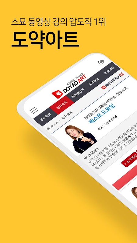 도약아트(http://www.doyacart.com/m)에서 제공하는 모든 강좌와 고화질 동영상을 모바일에서 수강하실 수 있습니다.