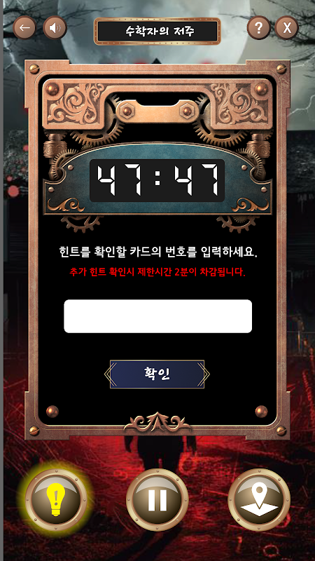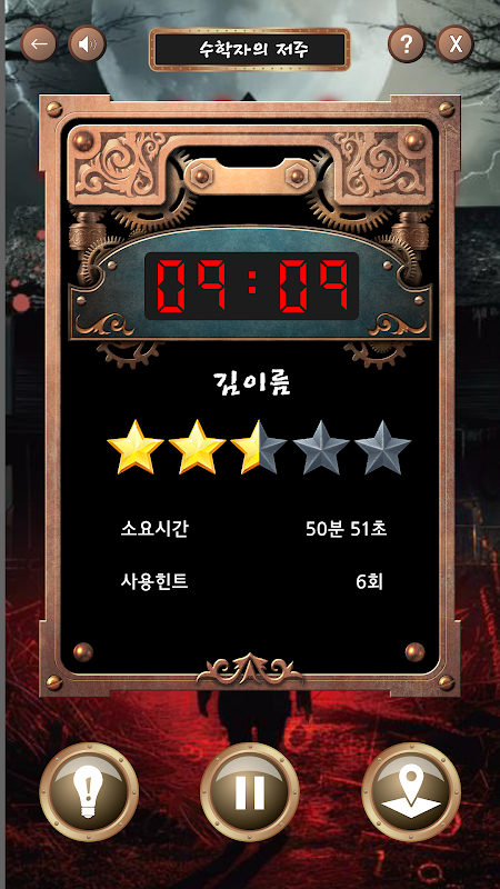 Mentre giochi con le carte, puoi controllare il limite di tempo, ottenere ulteriori suggerimenti e controllare i tuoi progressi attuali tramite l'app. Inserisci la tua password finale e controlla i risultati del gioco My Mathematician's Curse.