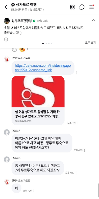 Informazioni di viaggio a Singapore che condividono chat aperta, app di collegamento Naver Open Talk.