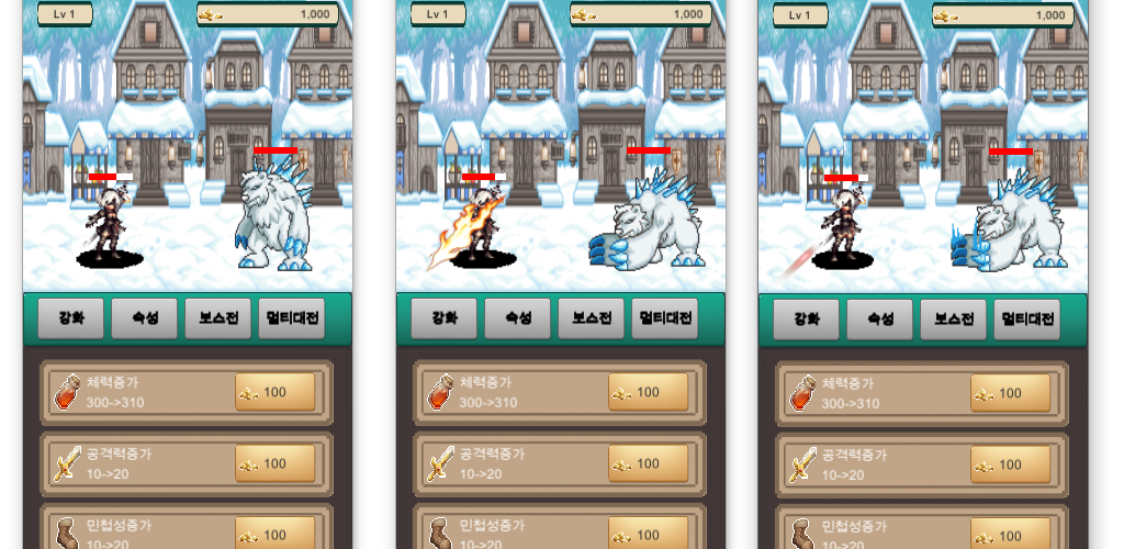 클릭커로 몬스터를 잡고 스탯을 올려 온라인에서 1:1로 싸워서 이기기