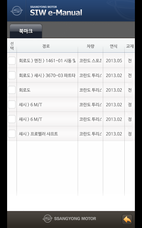 Questa applicazione è composta da istruzioni di manutenzione KG Mobility, schemi elettrici e manuali di istruzioni, ed è stata sviluppata per diffondere le corrette tecniche di manutenzione per tutti i tipi di veicoli sviluppati dalla nostra azienda.