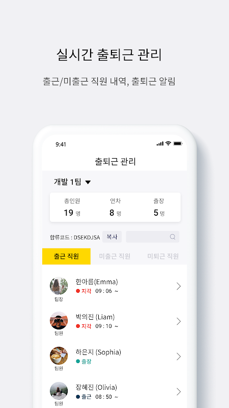 5. 출근 직원과 미출근 직원을 한눈에 확인