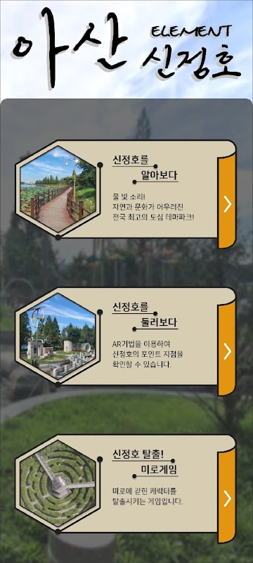 본 어플리케이션은 아산 신정호를 대상으로 제작되었습니다. 신정호를 방문한 후, AR카메라를 이용하여 멋진 체험를 해보세요.