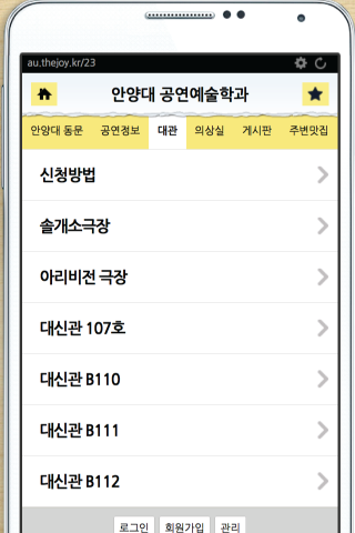 본 어플리케이션은 안양대 공연예술학과 학생들의 커뮤니티를 위한 공간으로서,