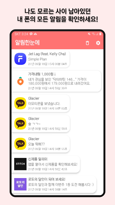 Informazioni su 알림한눈에 - 삭제된 메세지, 지난 알림 한눈에 보기