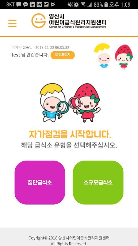 App del Centro di supporto per la gestione dei pasti per la previdenza sociale dei bambini della città di Yangsan.