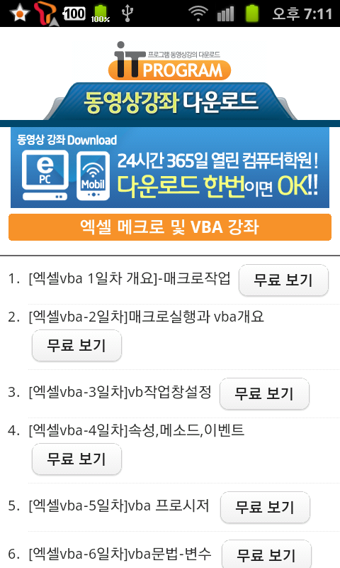 엑셀 메크로 VBA 동영상 강좌,컴퓨터 강의인터넷 교육 1.0
