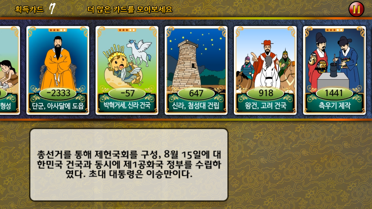 모든 카드를 오픈하여 랜덤 하게 주어집니다. 역사에 자신 있는 사람은 무한한 역사 순서에 도전하실 수 있습니다.