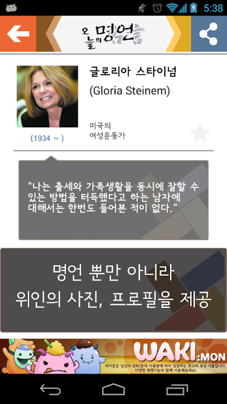 - 사용자 등록 : 여러분이 직접 명언과 위인을 등록하여 사용할 수도 있습니다.
