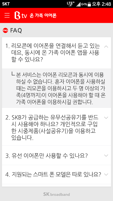 온가족이어폰(SKB UHD STB과 SKB공유기 필요) 1.2.2