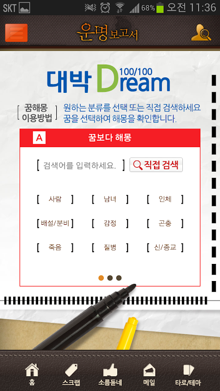 ◇ 오늘의 운세, 꿈해몽, 사주, 궁합, 타로, 토정비결, 신년운세, 심리 테스트, 이름풀이. 무료운세 등 다양한 운세 컨텐츠