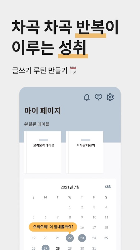 La scrittura è ancora scomoda? Va bene scrivere un diario per cinque giorni, una riga al giorno. Passo dopo passo, raggiungi il tuo obiettivo in Euneuniga. Posso guardare indietro in qualsiasi momento, quanti giorni, quanti giorni, come mi sono sentito. Con un calendario sempre pieno!