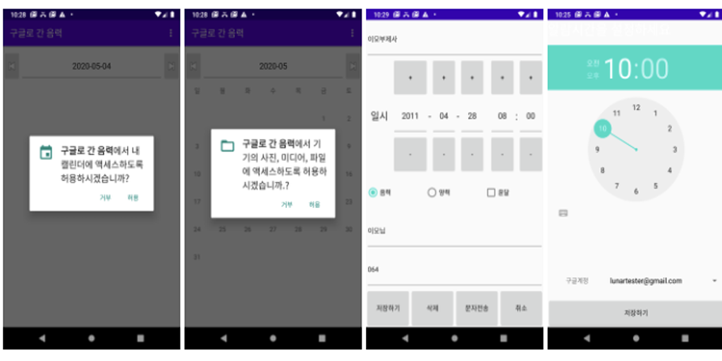 과거에 올렸던 앱인데, 더 이상 사용할 수 없는 내용들이 들어 있어서 기능을 변경 했습니다. 카렌더 연동은 더 이상 해 드릴 수 없음을 양해해 주시기 바랍니다. 개인정보 보호를 위한 구글의 정책을 준수하기 위해서 어쩔 수 없습니다. 그냥 앱 내부에서만 데이터를 관리 합니다.