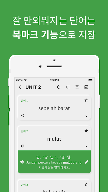 - Offre la possibilità di rivedere le parole indonesiane per parte, unità e intera lingua