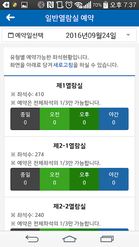 - È possibile effettuare prenotazioni per sale di lettura generale, sale studio di gruppo, centri di informazione elettronica e centri multimediali tramite l'app.