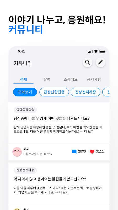 3. Gestione dei farmaci: un trattamento costante è essenziale per il trattamento dell'ipertiroidismo e dell'ipotiroidismo. Se utilizzi la funzione di gestione dei farmaci di Grandy, puoi assumere i tuoi farmaci in modo accurato e in un determinato momento, in modo da mantenere un'abitudine farmacologica ottimale.