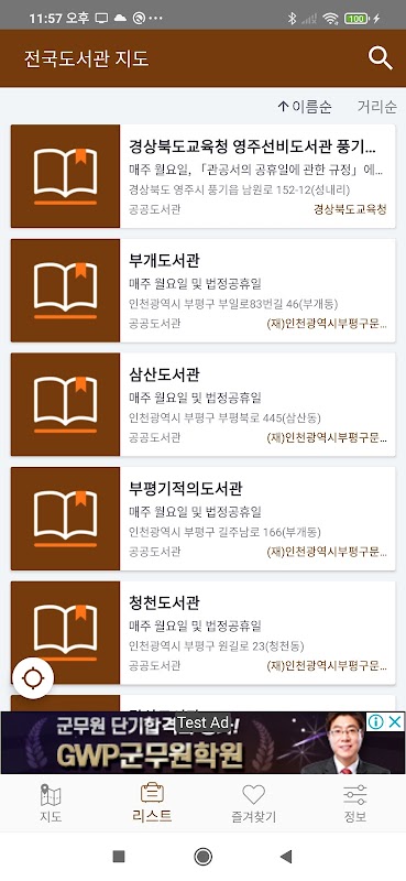 전국 도서관 지도 - 주변 도서관 위치 정보 1.0