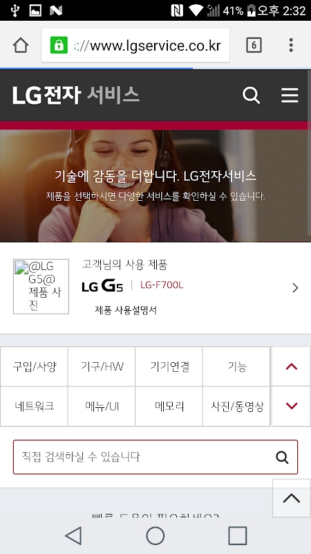 - 해당 앱은 LG전자 홈페이지의 고객지원 메뉴로 연결하는 서비스입니다.