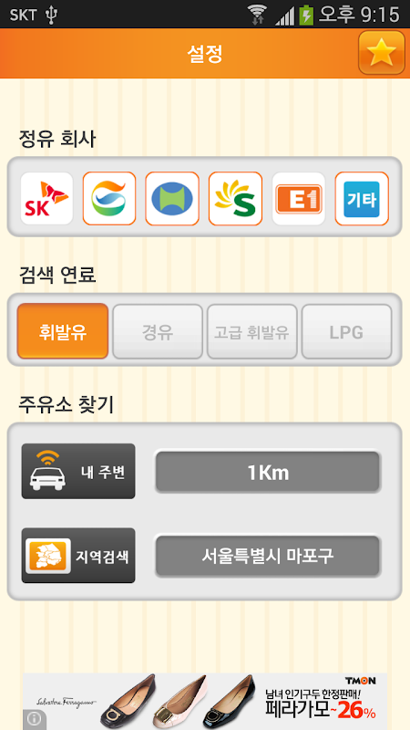 휘발류,경유, 고급휘발류를 현 위치기준으로 또는 주소로 주유소를 찾고 주유소와 현 위치와 거리순, 가격순으로 검색된 주유소들을 보여줍니다.