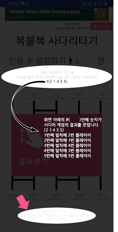 이 사다리 게임은 사용자에게 미리 결과를 알려줍니다.