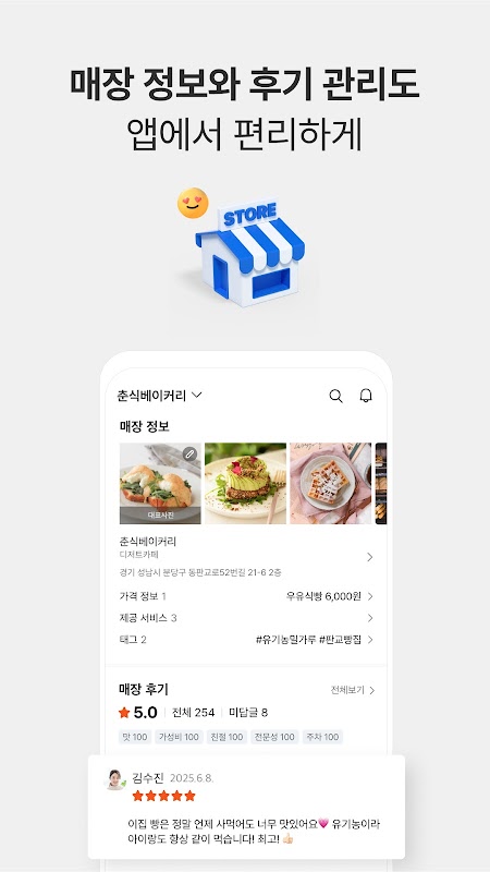 • Gestisci le informazioni del negozio Kakao Map come orari di apertura, menu e recensioni.