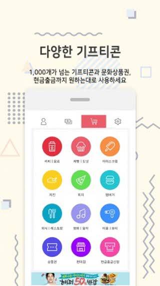 Vengono forniti circa 2.000 tipi di prodotti gifticon, inclusi buoni regalo culturali, buoni regalo online, contanti online, soldi felici, biglietti per il cinema, caffè, minimarket e buoni regalo per mangiare fuori.