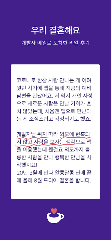 Ci sono diverse persone che mi hanno inviato e-mail dicendo che si sono sposate mentre bevevano una tazza di caffè. È una grande gioia per me. 💓