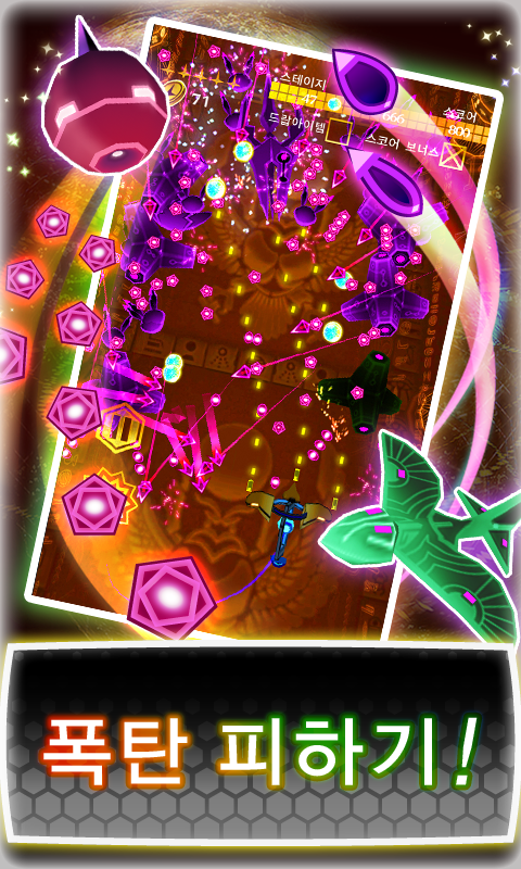 화려한 그래픽 속에서 빗발치는 총알을 피하며 적을 격파하는 스릴과 쾌감을 맛볼 수 있는