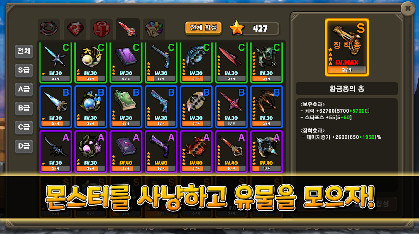 ● Equipaggia gli oggetti per migliorare le statistiche della parte superiore!
