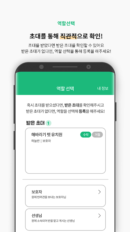 Un bar per animali domestici per una cura intelligente degli animali domestici, un promemoria intelligente per l'asilo degli animali domestici. Nella gestione delle presenze, condividi ciò che vuoi sapere, come il controllo della temperatura e l'uso di farmaci. Un servizio differenziato che condivide e comunica con i genitori i contenuti gestionali, abitativi ed educativi fornisce fiducia e rassicurazione.
