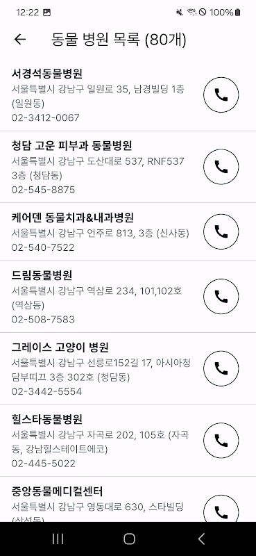 - Puoi cercare e chiamare gli ospedali per animali attualmente operativi a Seoul.