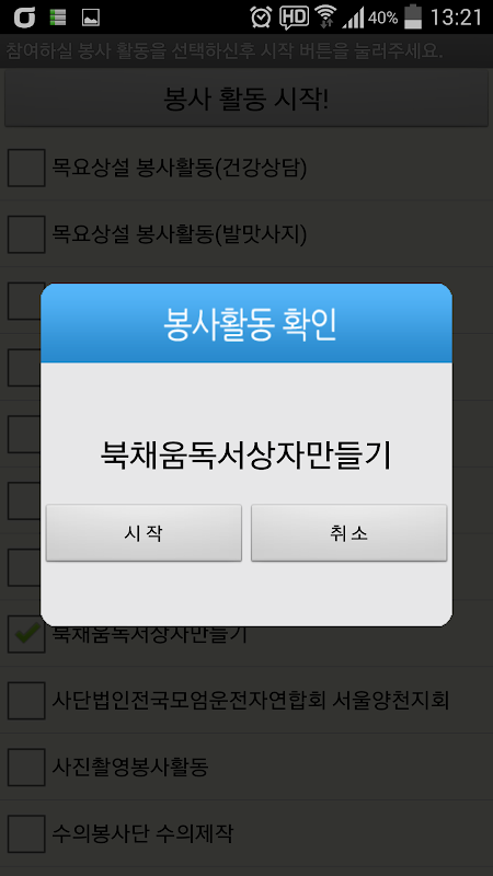 자원봉사활동시 스마트폰을 이용하여 봉사활동 시작과 종료시간을 기록관리하는 것입니다.