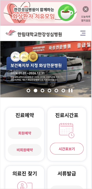 Eseguendo l'app, puoi andare direttamente alla home page mobile dell'Hallym University Hangang Sacred Heart Hospital.