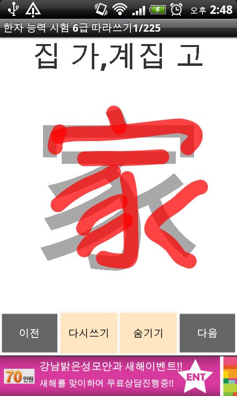 손가락을 이용해서 따라써 보면서 한자를 학습합니다.