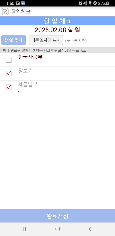 ㅇ OX controlla e salva se l'elenco di controllo delle cose da fare è stato completato o meno