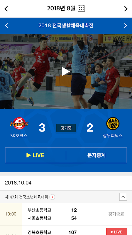 제공되는 모든 정보는 실시간으로 제공되고 국내에서 열리는 국내, 국제 경기는 앱을 통해 생방송으로 경기를 시청할 수 있다.