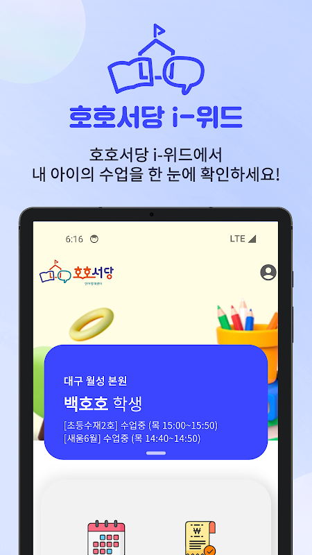 Puoi controllare i registri delle lezioni di tuo figlio su Hoho Seodang i-With.