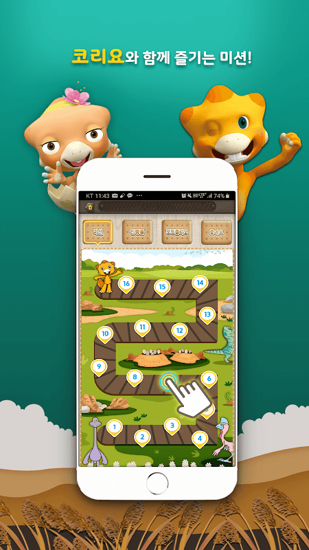 를 통해 코리요와 함께 스마트폰으로 증강현실(AR) 게임을 즐기고 공룡알화석지 속 숨겨진 이야기를 보고 느끼고 퀴즈로 풀어보며 코리요와 공룡알화석산지에 대해 체험해보세요