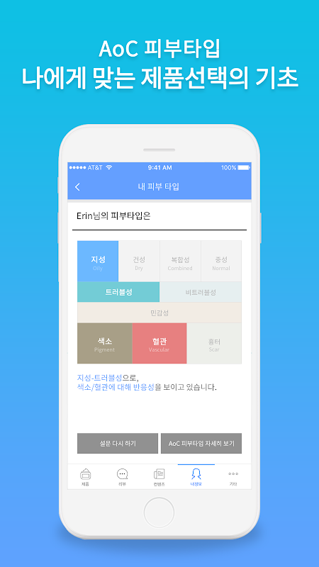 - 피부타입 진단 및 피부타입에 따른 맞춤형 정보제공, 고객의 니즈에 맞는 제품 검색 가능 (추후제공)
