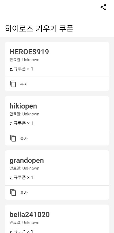 "히어로즈 키우기"의 쿠폰을 확인하고 복사 할 수 있습니다.