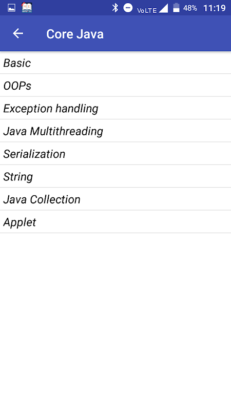 Intervista Domande sono classificati in 8 argomenti di java: -