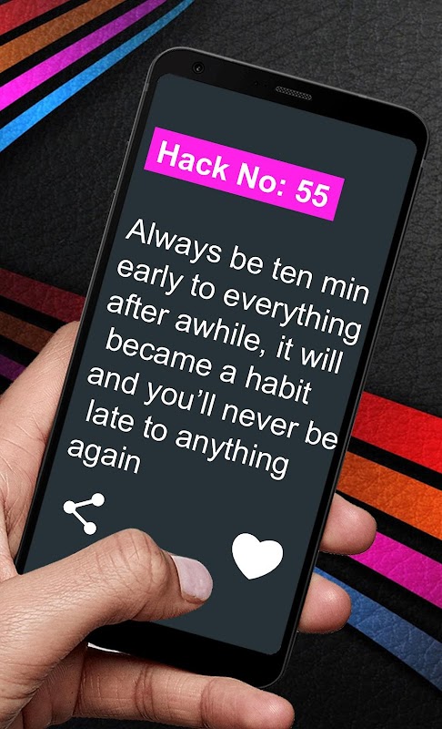 Oltre 1000 hack, suggerimenti e trucchi per ottimizzare la tua vita sono disponibili in questa piccola app mobile. Contiene consigli sulla vita, suggerimenti per l'hacking, trucchi e suggerimenti facili da condividere e salvare nei preferiti. Se stai cercando consigli sui social media, hack di vita per hacker di casa e viaggi che puoi trovare qui in questa app. Puoi essere un maestro dei trucchi rispondendo alle domande dei trucchi mentali nella sezione delle domande. Oltre 100 hack di vita è qui per aiutarti con il semplice hack di vita con problemi di smartphone nella vita. Pubblicare quotidianamente hack di Life per aiutarti a superare la vita leggermente più facilmente degli altri, Come fare le cose,