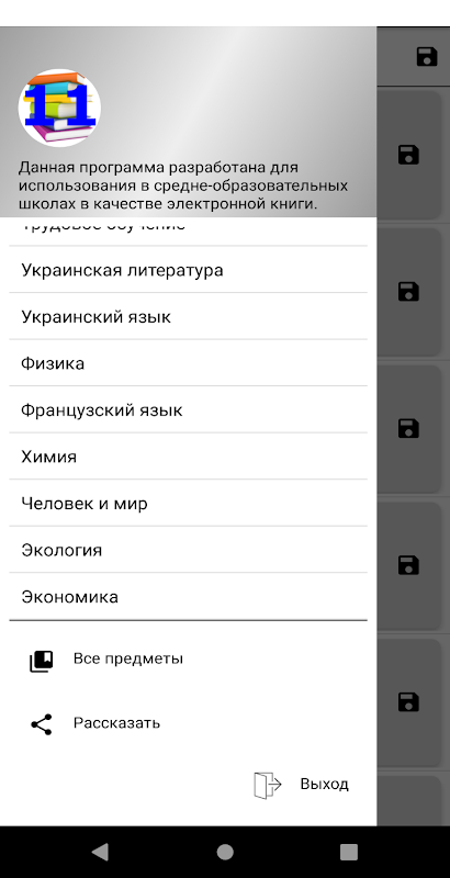 Приложение предназначено для использования при обучении по программе средне образовательных школ Украины.