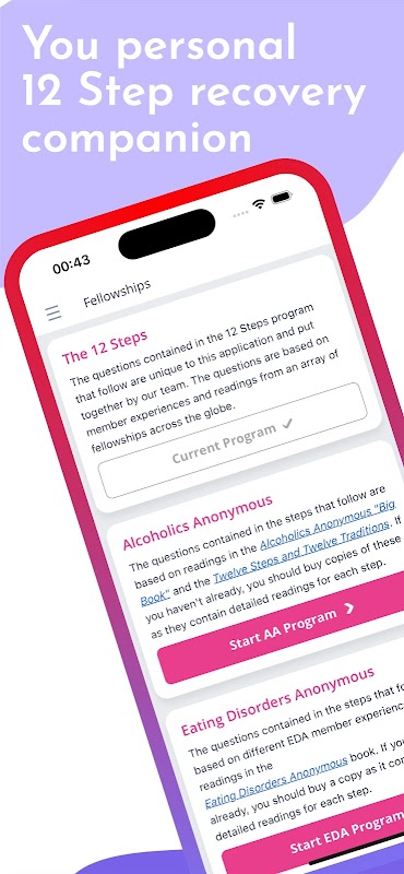 Un'app rivoluzionaria in cui puoi finalmente eseguire i tuoi passaggi scritti da qualsiasi programma Twelve Step in un'applicazione Android sicura e conveniente.