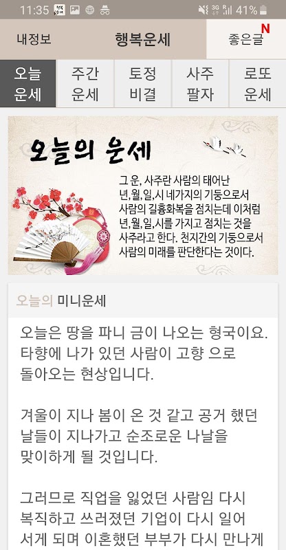 - 매일 아침마다 오늘의 운세를 확인하고, 마음을 울리는 좋은글도 받아보세요^^