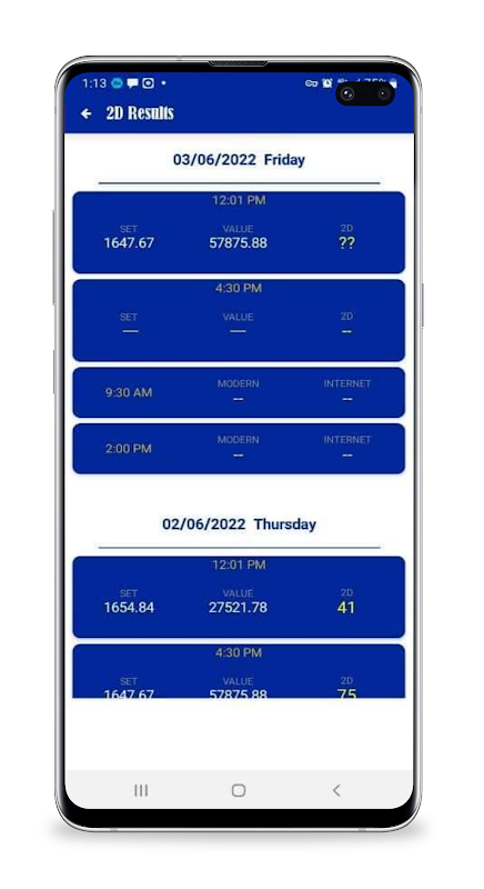 Questa app sta creando per la visualizzazione di risultati 2D dal vivo ogni giorno e puoi ottenere un numero fortunato usando questa app. Tutti i numeri fortunati sono gratuiti per tutti gli utenti. Buon utilizzo, grazie a tutti i cari utenti.