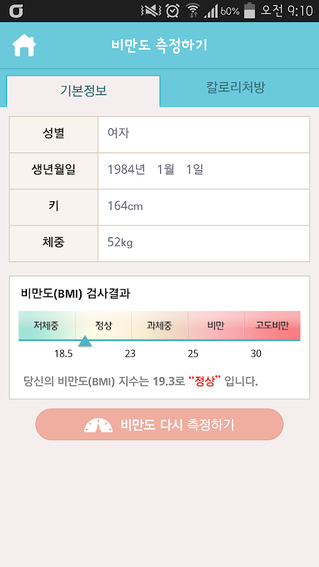 비만도 계산기(BMI)로 비만도를 체크하고,